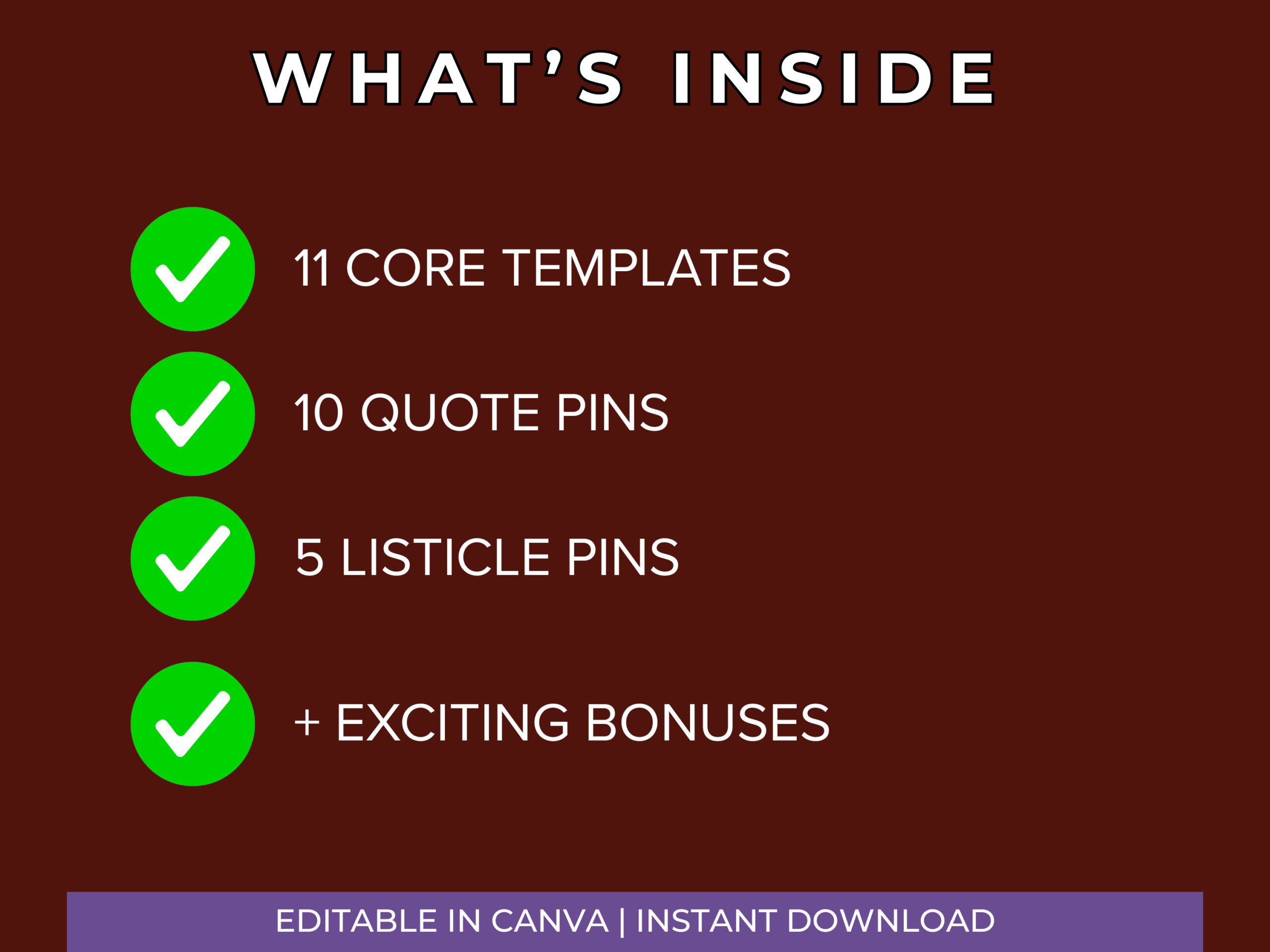 Create scroll-stopping pins in minutes with 26 editable Canva Pinterest templates.✔ 11 Core templates✔ 10 Quote pins✔ 5 Listicle pinsPerfect for side hustlers, bloggers, and small business owners who want to save time and grow on Pinterest.